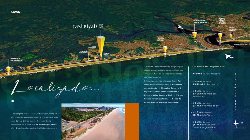 A VCA CONSTRUTORA apresenta o CASTÉLYAH, um charmoso empreendimento de frente para o mar na Orla dos Milionários, Ilhéus/BA. São apartamentos de 1, 2 e 3 dormitórios a poucos metros da bela Praia do Sul e cercado de conveniências como Assaí, Atacadão, Atakarejo, SmartFit e muito mais.