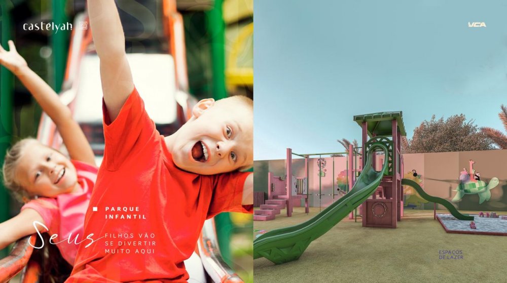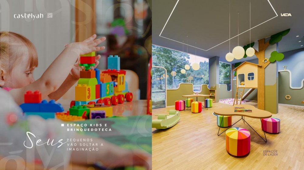 Espaço kids, brinquedoteca e parque infantil a céu aberto