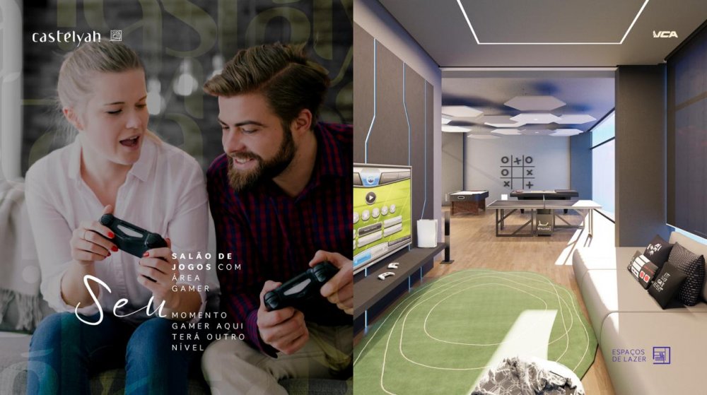 Salão de Jogos com espaço game para as crianças